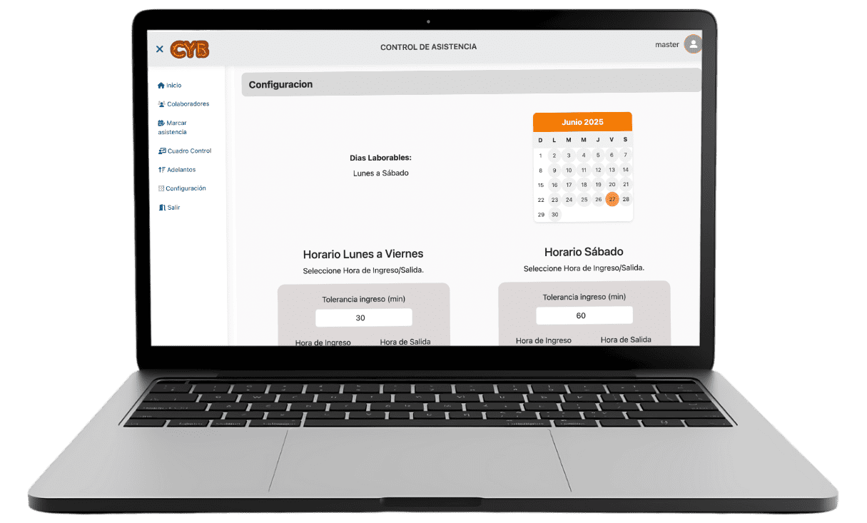 Opciones de justificar inasistencias y configuración de tiempos de tolerancia.