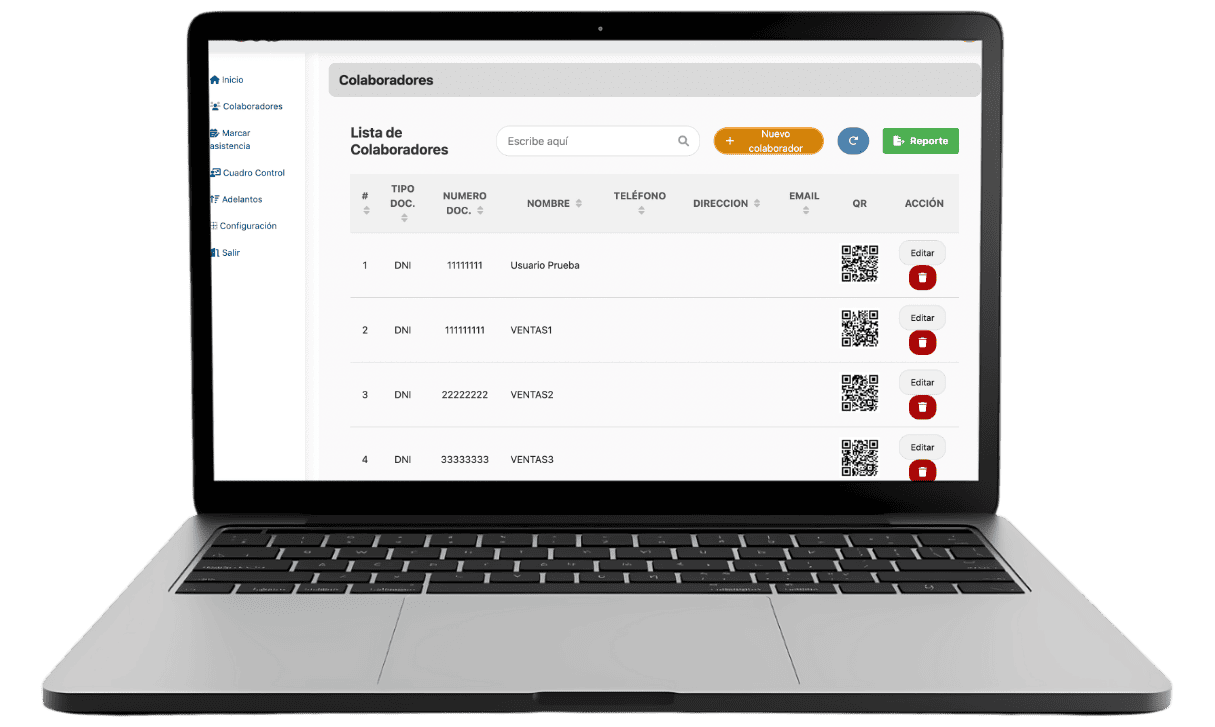 Sistema web multiusuario con registro por QR, horarios configurables y reportes claros.